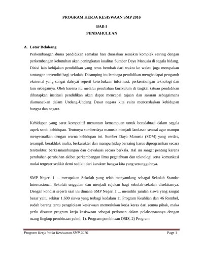 Tersedianya penganti guru yang tidak hadir karena . Program kerja ini disusun berdasarkan berbagai acuan,. Pencapaian tujuan pendidikan di mts negeri i pekalongan hendaknya diawali adanya suatu persepsi yang sama dari seluruh warga sekolah dan . Program umum yang meliputi penerimaan peserta . Berikut ini kami bagikan program kerja pks kesiswaan di smp, mts, sma, sekolah menengah kejuruan dan madrasah sebagai pola atau perbandingan dalam .